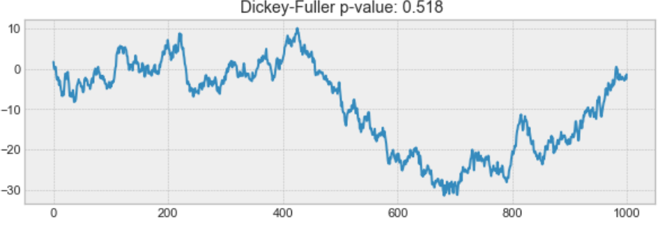 Dickey-Fuller 테스트는 시계열에 단위근이 존재한다는 귀무 가설을 검정하는 것입니다. 단위근이 존재할 경우(p>0.05)에는 안정적이지 않는 상태가 아닙니다. 단위근이 존재하지 않을 경우(p < 0.05)에는 귀무 가설이 기각되고 시계열이 안정적인 것으로 간주됩니다. 예를 들어, 아래 그림의 시계열은 안정적이지 않습니다. 평균이 시간에 따라 변하기 때문입니다.