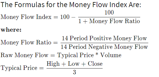 마지막으로 자금 흐름 지수를 계산해 보겠습니다. 우리가 알고 싶은 것은 돈의 흐름에 대한 긍정적 또는 부정적 방향성 입니다. 아래에서 Money Flow Index (MFI)를 계산하는 두 가지 공식을 소개해 드리겠습니다.
