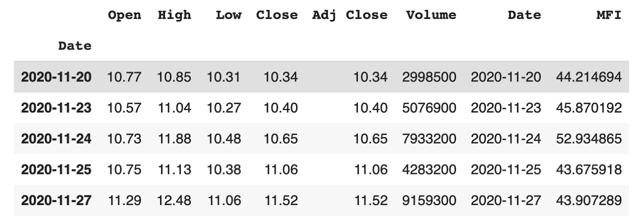df2['MFI'] = mfi