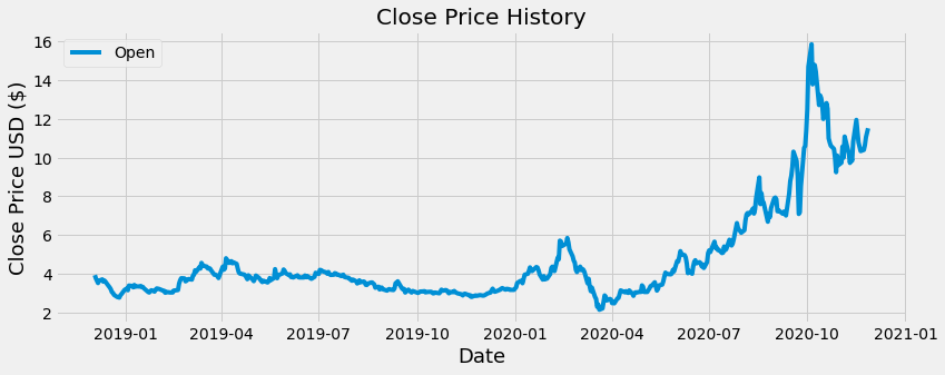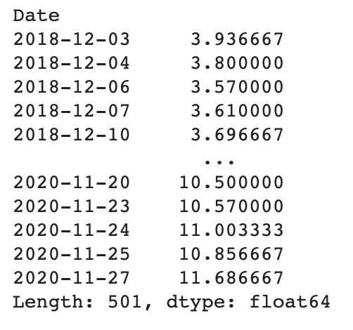 이제 예시 데이터를 야후에서 다운로드 받오겠습니다. 2021년은 그린에너지의 해가 될 것으로 기대되고 있기 때문에, 전기차 배터리의 핵심 원료인 리튬을 생산하는 리튬아메리카(NYSE: LAC)의 최근 1년 데이터를 예제로 사용하겠습니다. 야후 파이낸스를 통해 데이터를 가져오겠습니다. 혹시 관련 라이브러리가 없는 분은 아래 명령어로 라이브러리를 설치해 주시기 바랍니다.