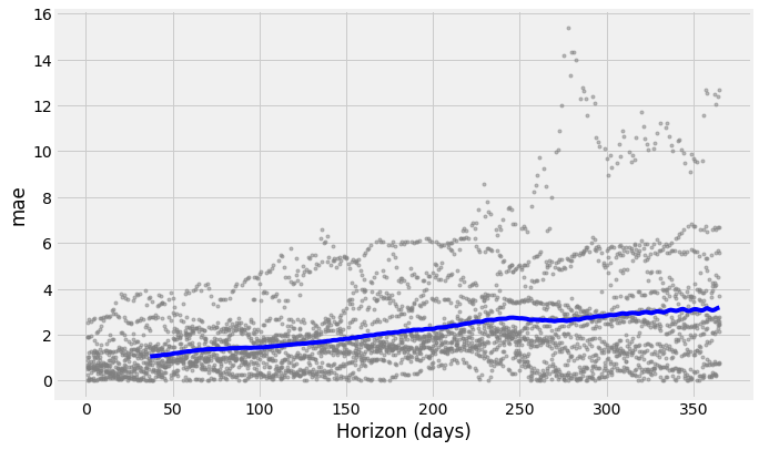 fig = plot_cross_validation_metric(df_cv, metric = 'mae')