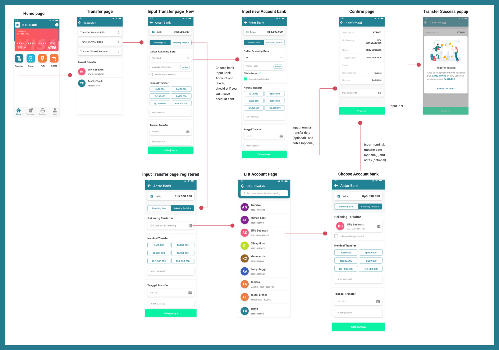 사용자가 새로운 다른 은행 계좌로 이체하려는 경우 은행 계좌를 다시 확인해야합니다. 그 이유는 은행 계좌를 입력 할 때 실수하지 않기 위해서입니다. 예, 이것은 새 계정을 입력 할 때 Jenius의 프로세스에서 영감을 얻었습니다.