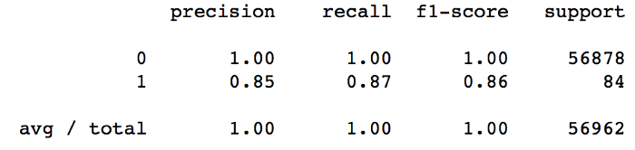 우리 모델은 사기 거래를 예측하기 위해 Random Forests Classifier를 사용합니다. 불균형 데이터 문제를 해결하기 위해 아무것도하지 않고도 우리 모델은 네거티브 클래스 레이블에 대해 100 % 정밀도를 달성 할 수있었습니다.