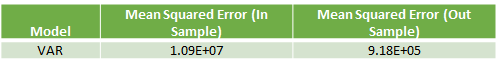 관련 예측 변수를 자동 회귀 모델에 추가하고 벡터 자동 회귀 모델로 이동하면 다음과 같은 결과를 얻을 수 있습니다.