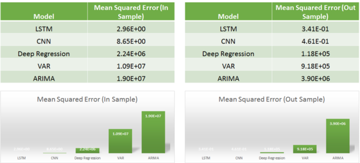 따라서 전체적으로 평균 제곱 오차의 추세로 모형의 성능을 판단해 본다면 전통적인 시계열 분석 모형보다 딥러닝 모형이 좋다고 할 수 있습니다.
